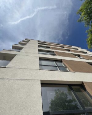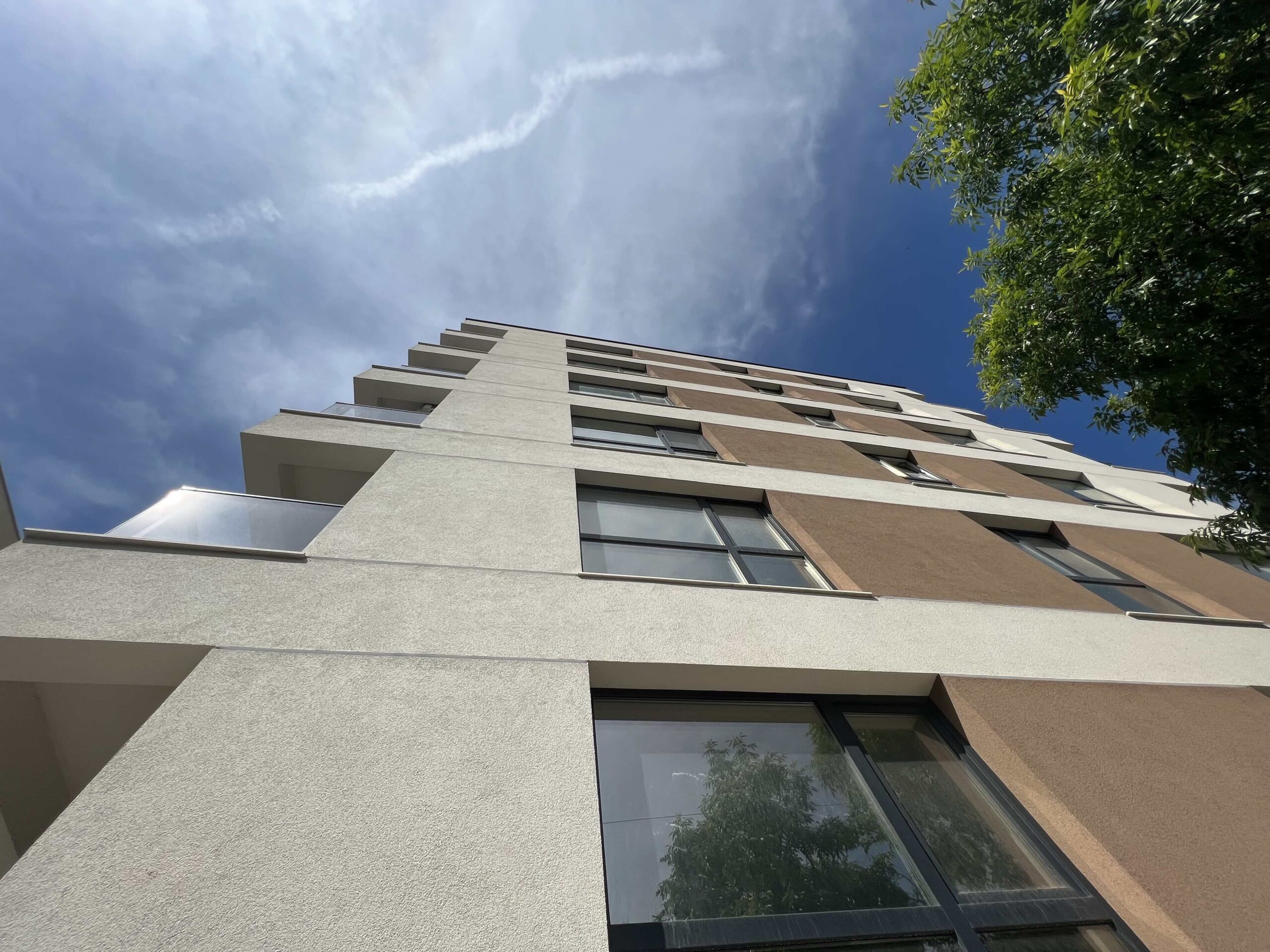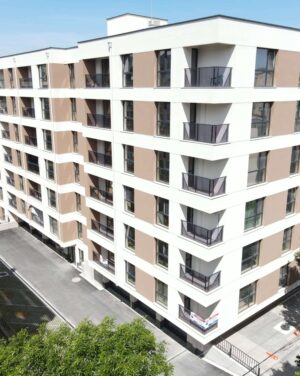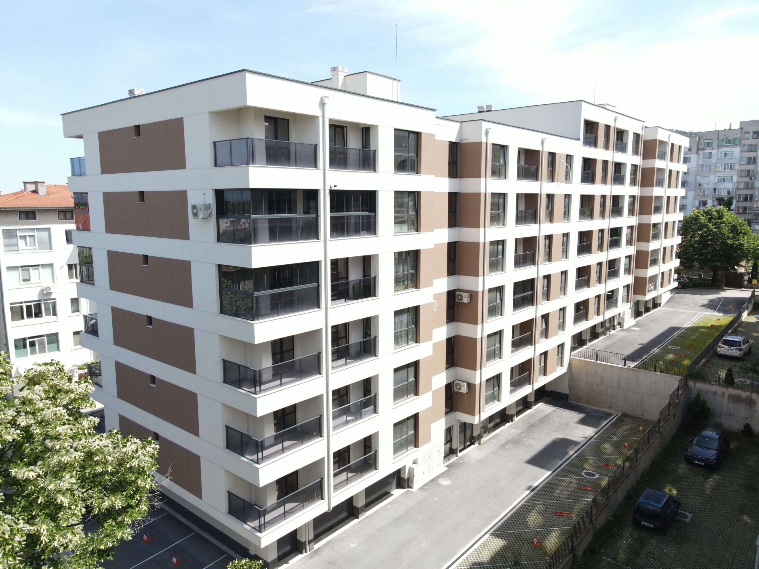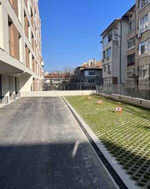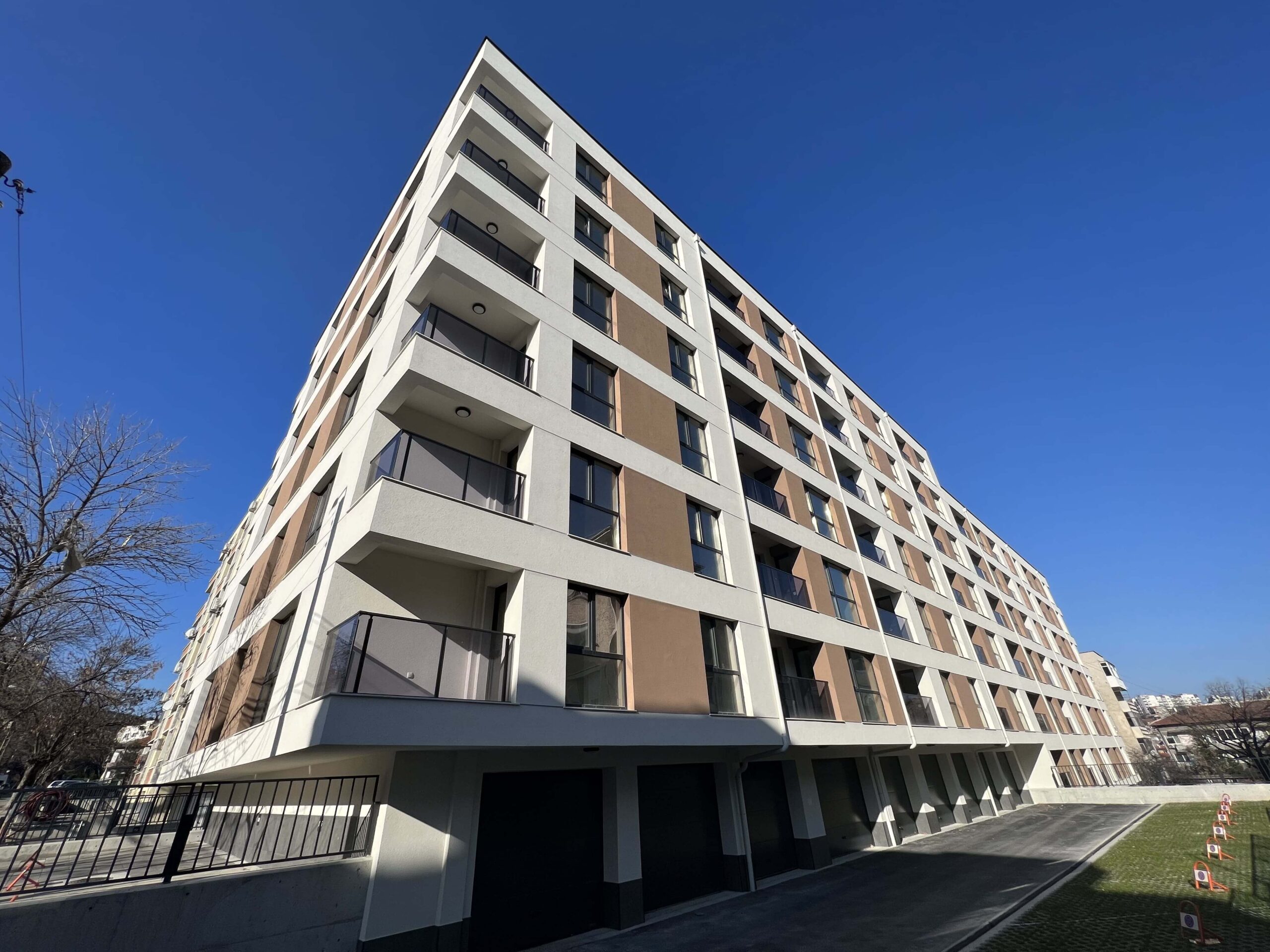 Многофамилна жилищна сграда с гаражи "Хармония",гр. Шумен , ул. Георги Кирков №22, ул. София № 21 с РЗП 6587 кв.м, състояща се от 2 секции с 78 апартамента и 29 гаража. Построена през 2022г.