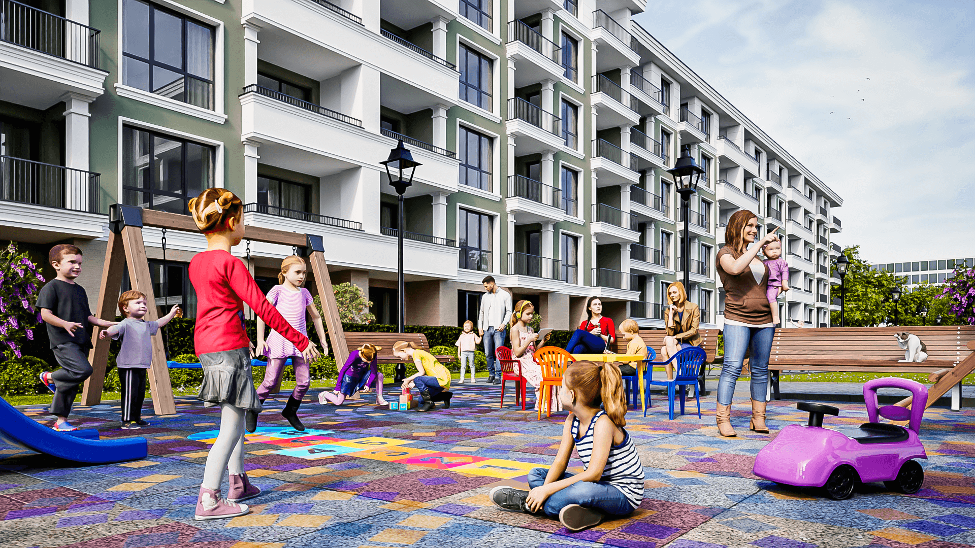 Зони за отдих и социален живот, които правят комплекса „жив“;