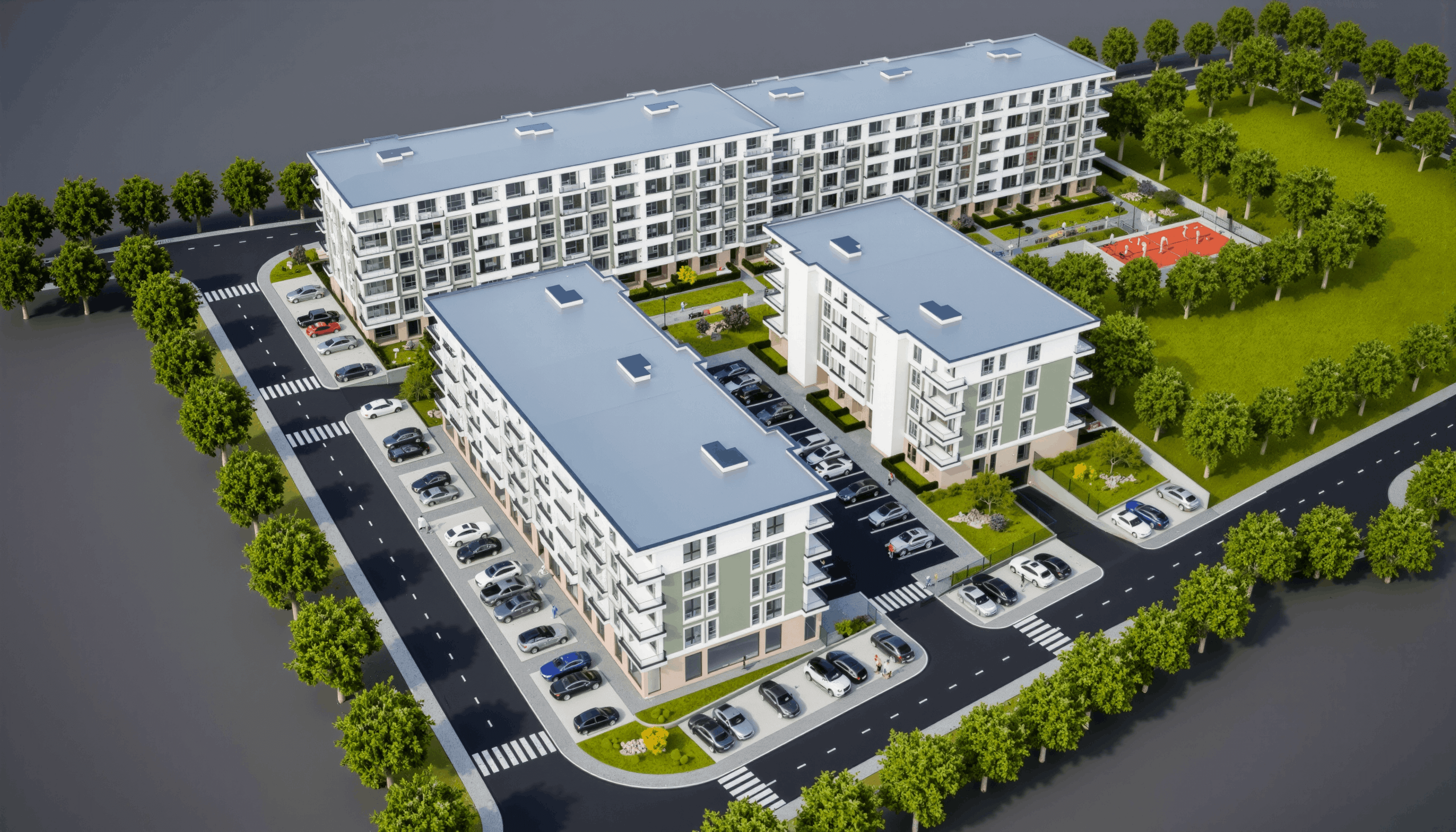 - Търговска зона: Магазинът в комплекса ще предлага всичко необходимо, спестявайки часове чакане в големите хипермаркети.